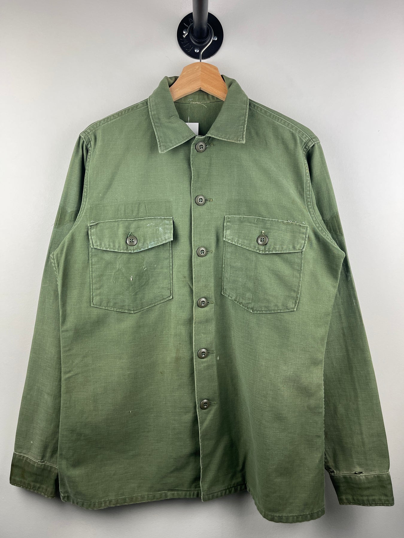 Vintage 80s US Military OG 507 Green Long Sleeve Button Up Utility Shirt