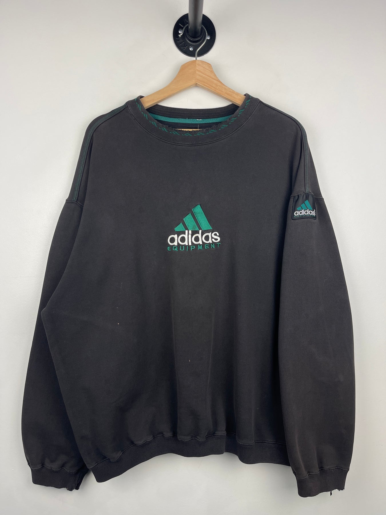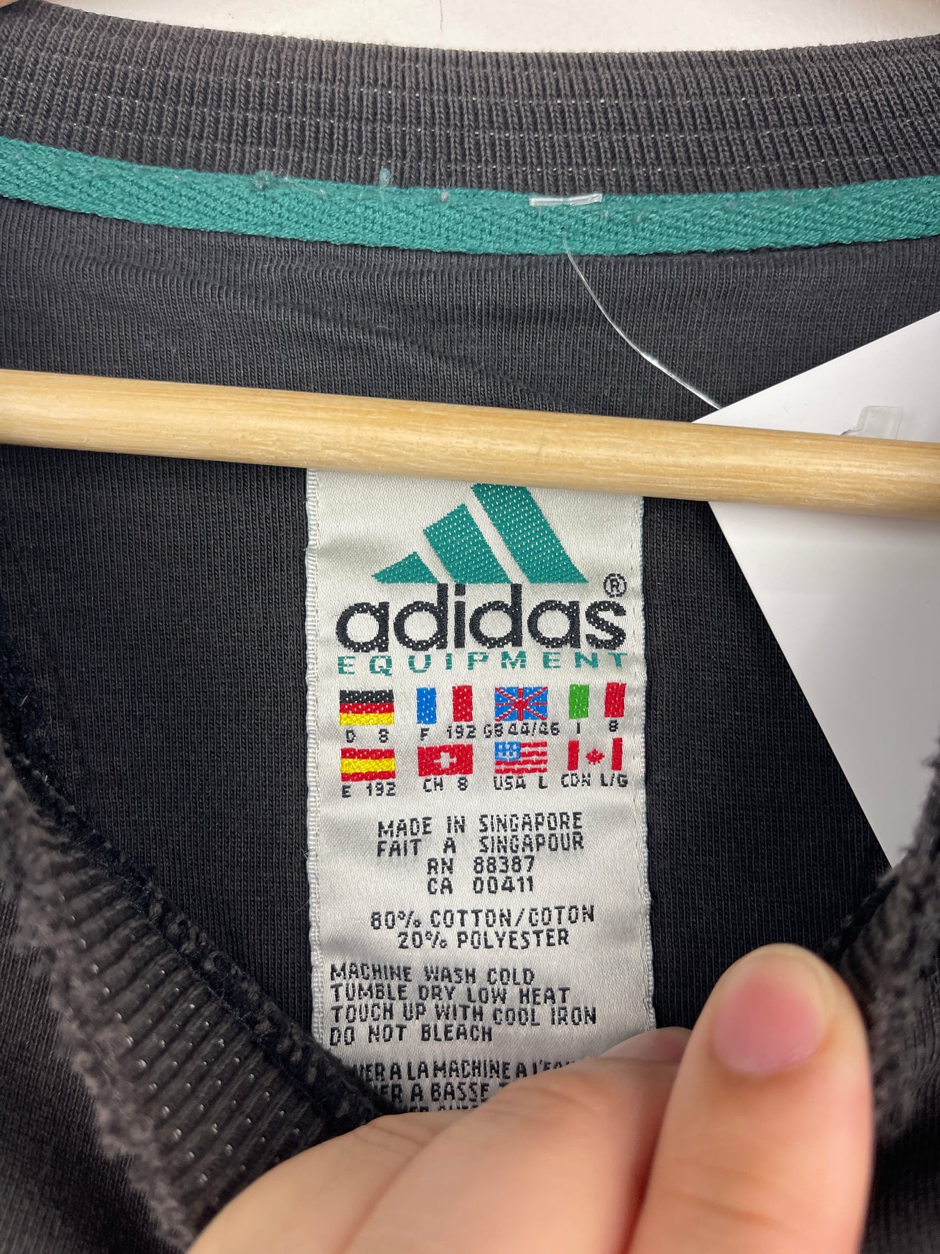 "Vintage 90s Adidas Equipment Embroidered Black \u0026 Green Crewneck"