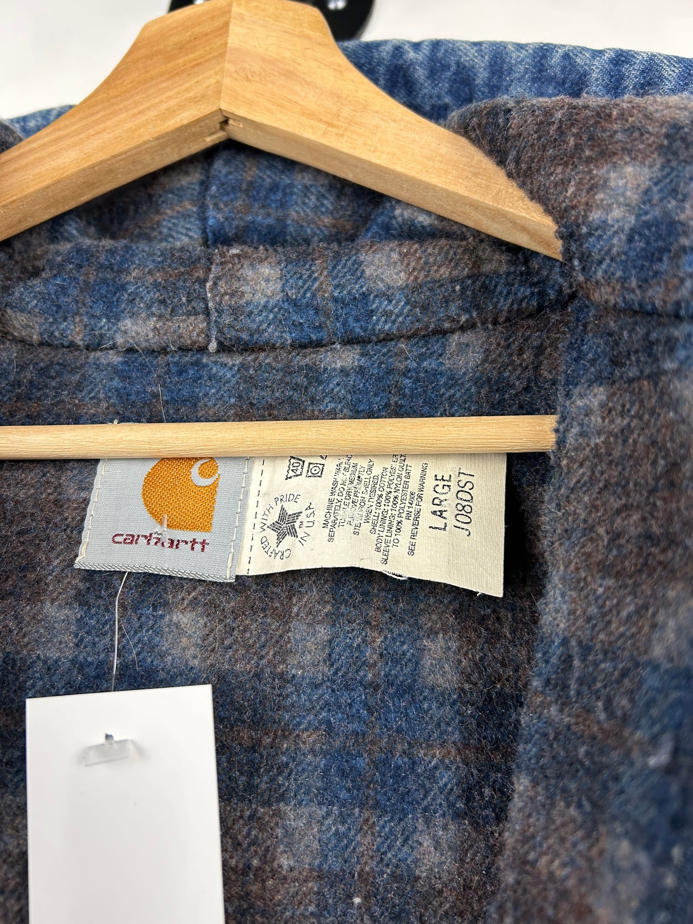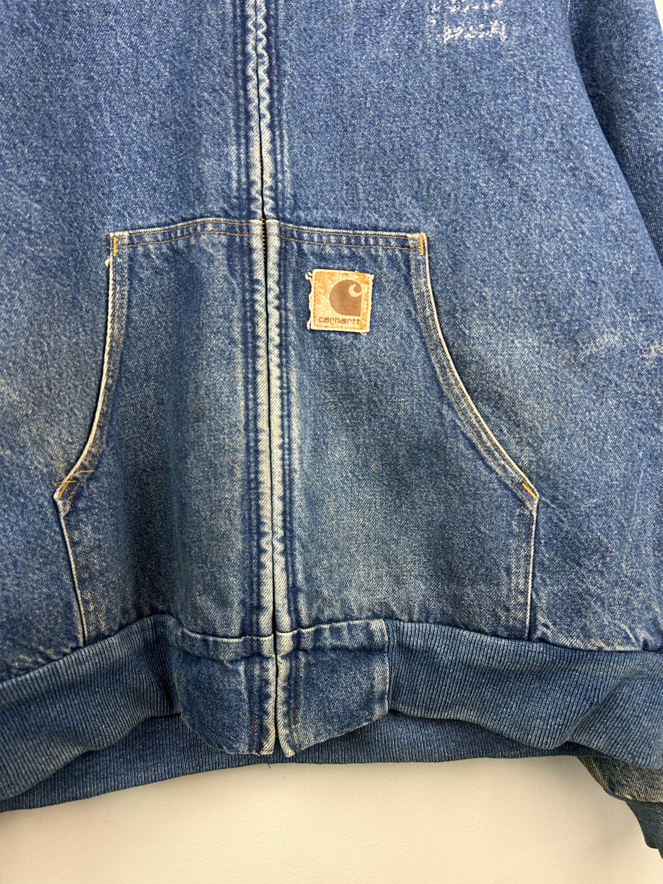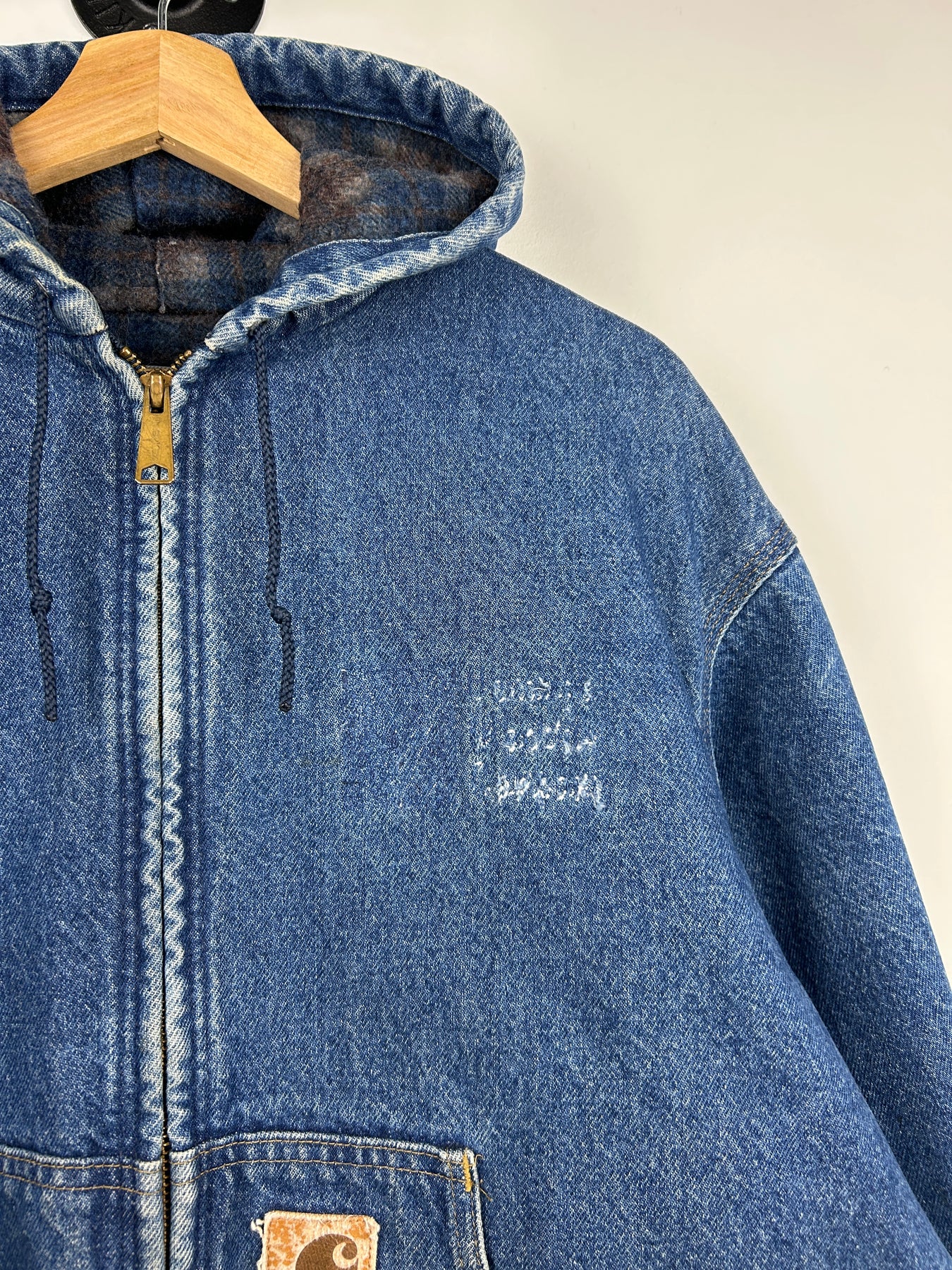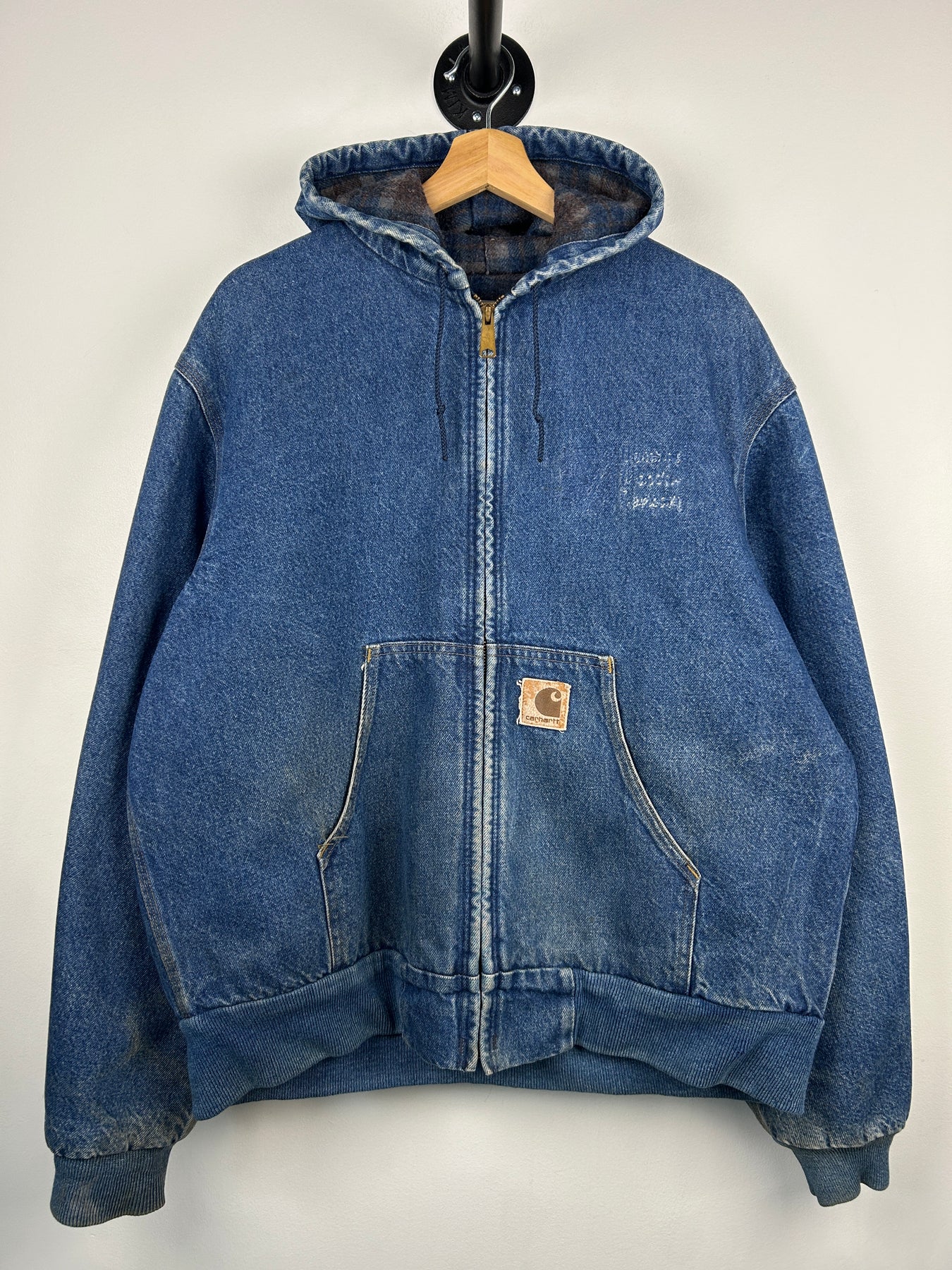 Vintage 90s Carhartt Active Blanket Lined Blue Denim Hooded Work Jacket J08DST