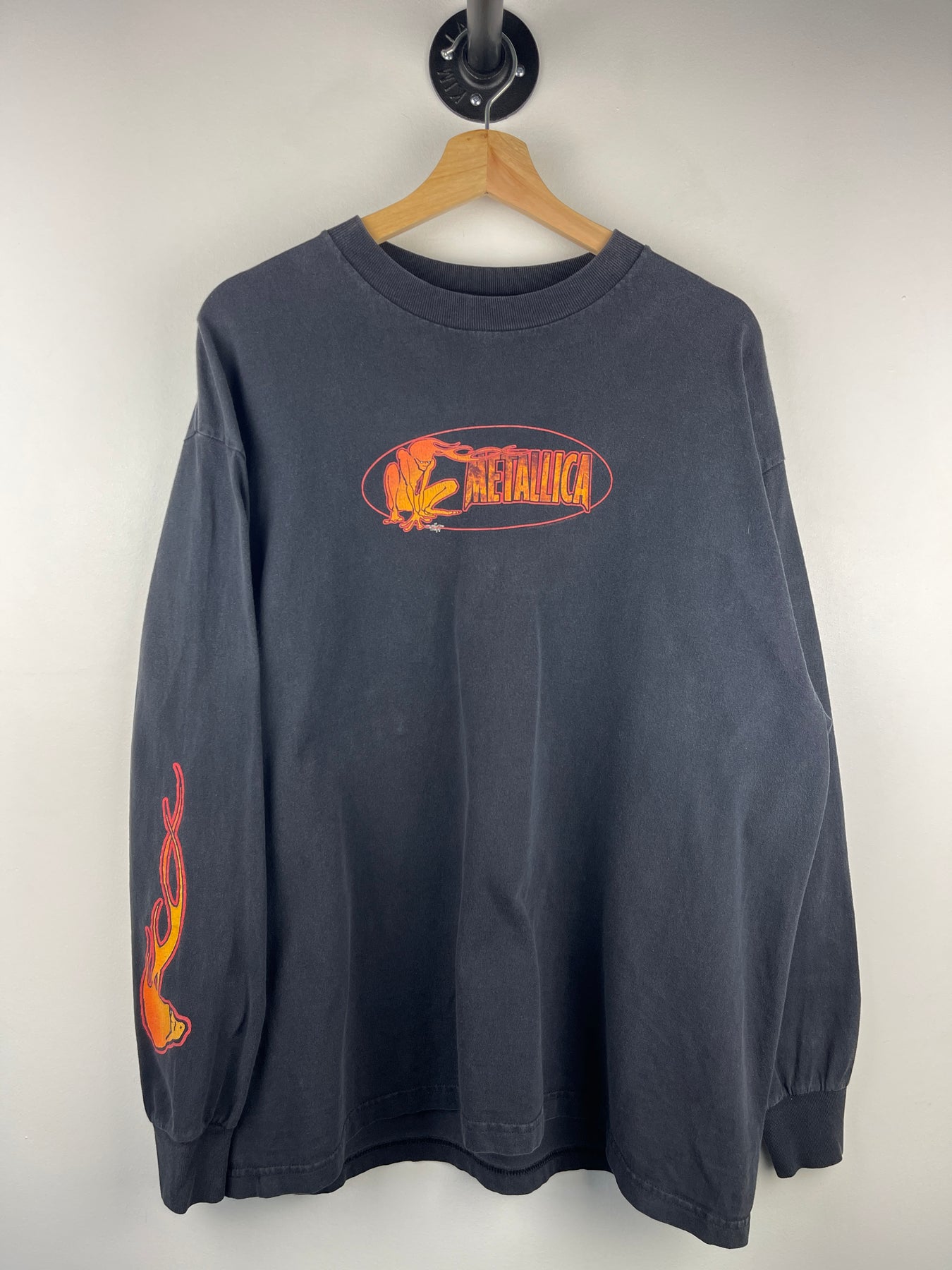 Vintage 90s Metallica Squindo Flames Black Long Sleeve