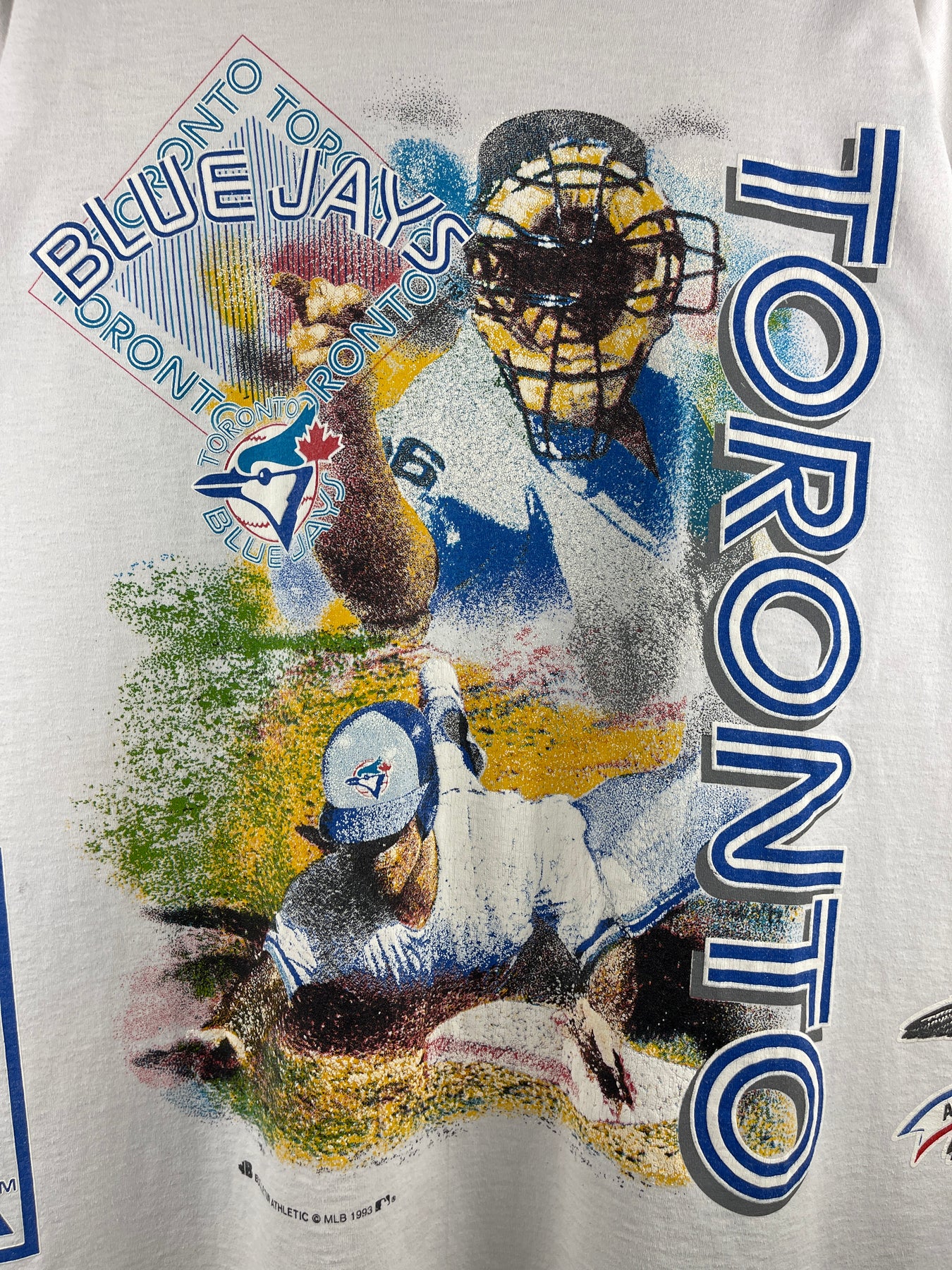Vintage 90s MLB Bulletin Toronto Blue Jays All Over Print White Tee