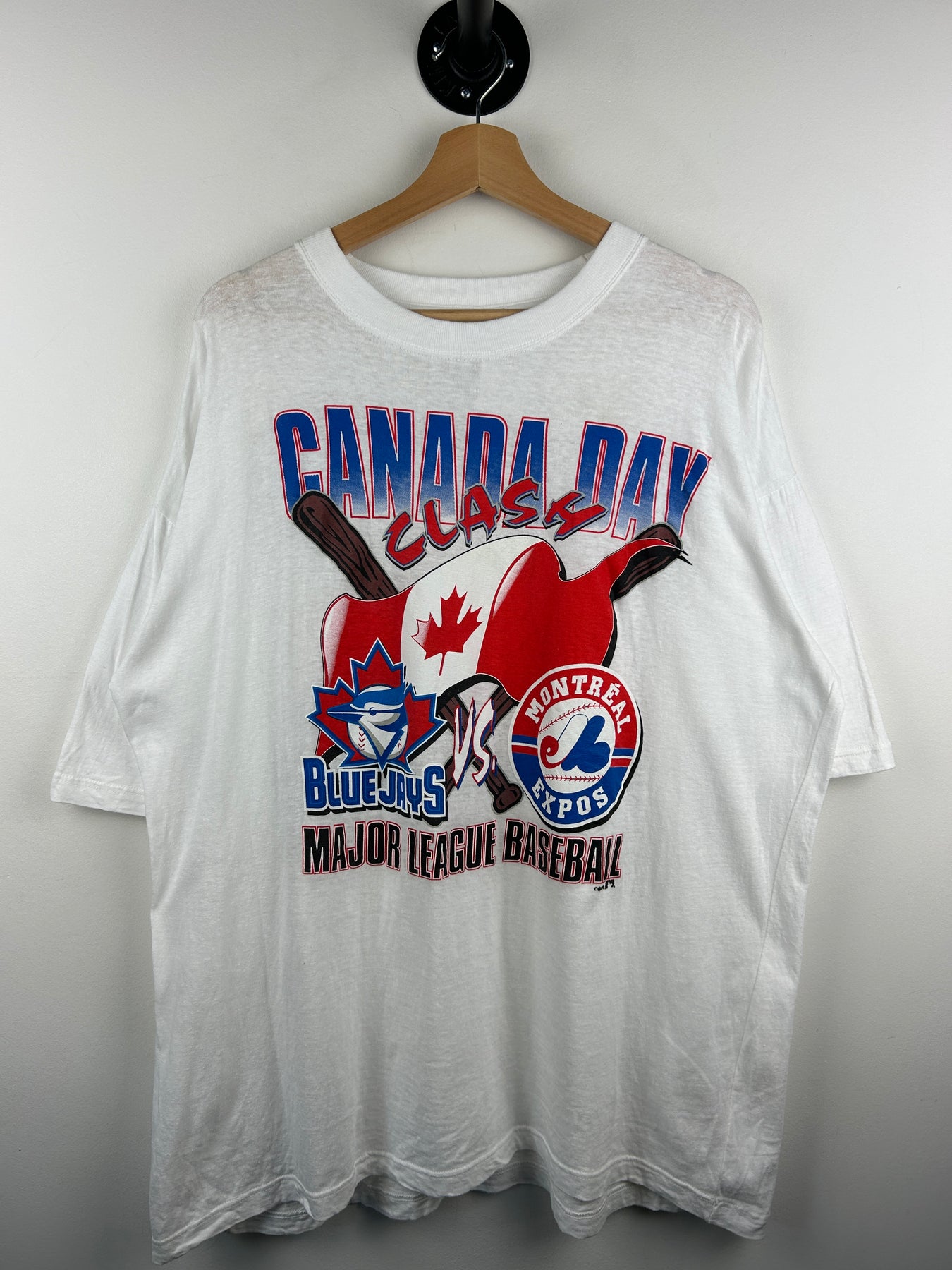 Vintage 90s MLB Toronto Blue Jays VS Montreal Expos Canada Day Clash White Tee
