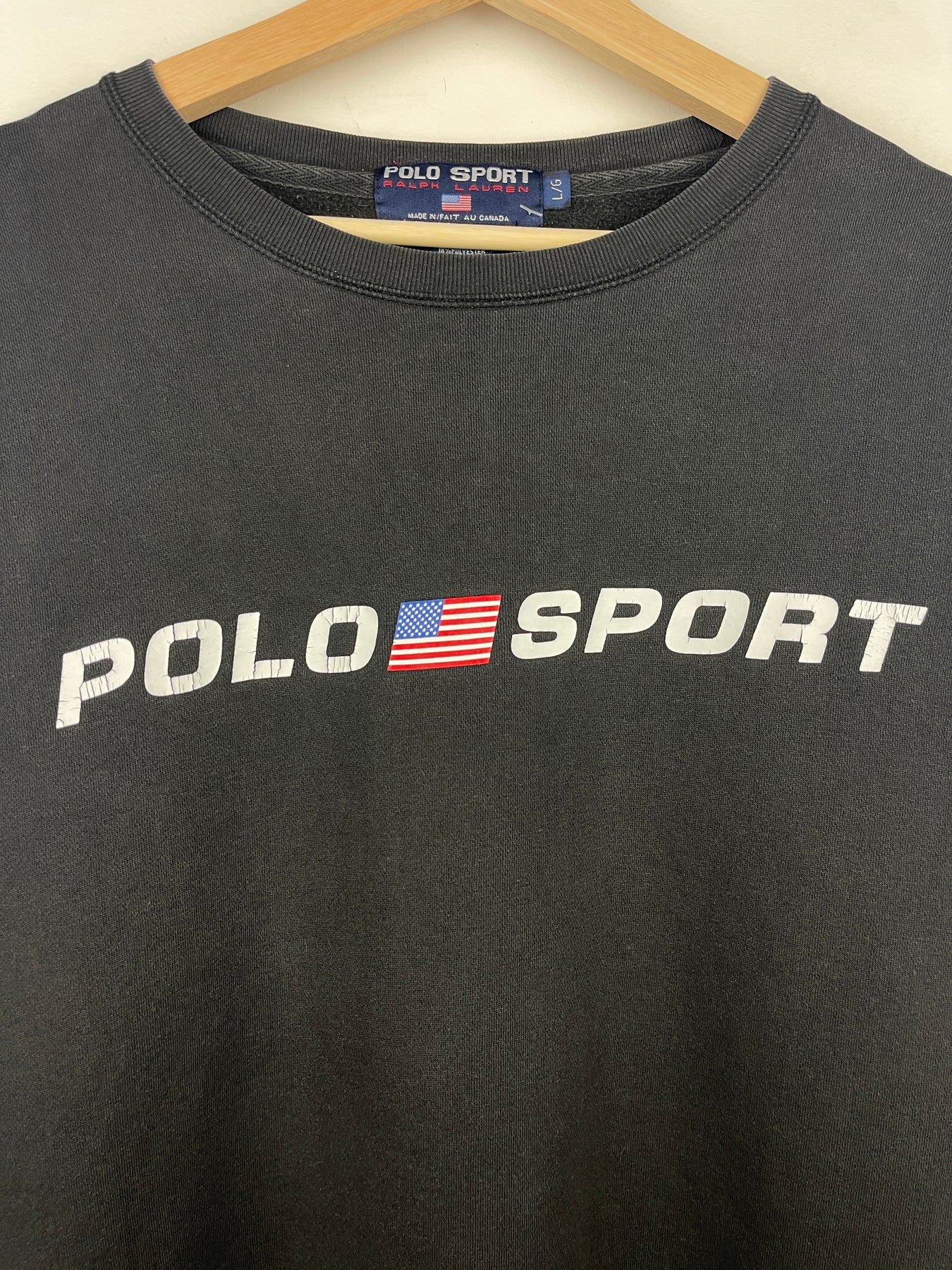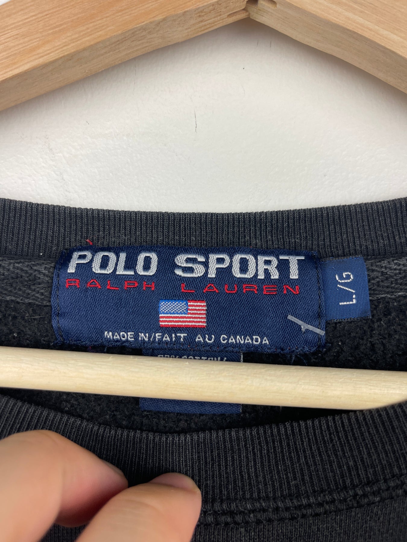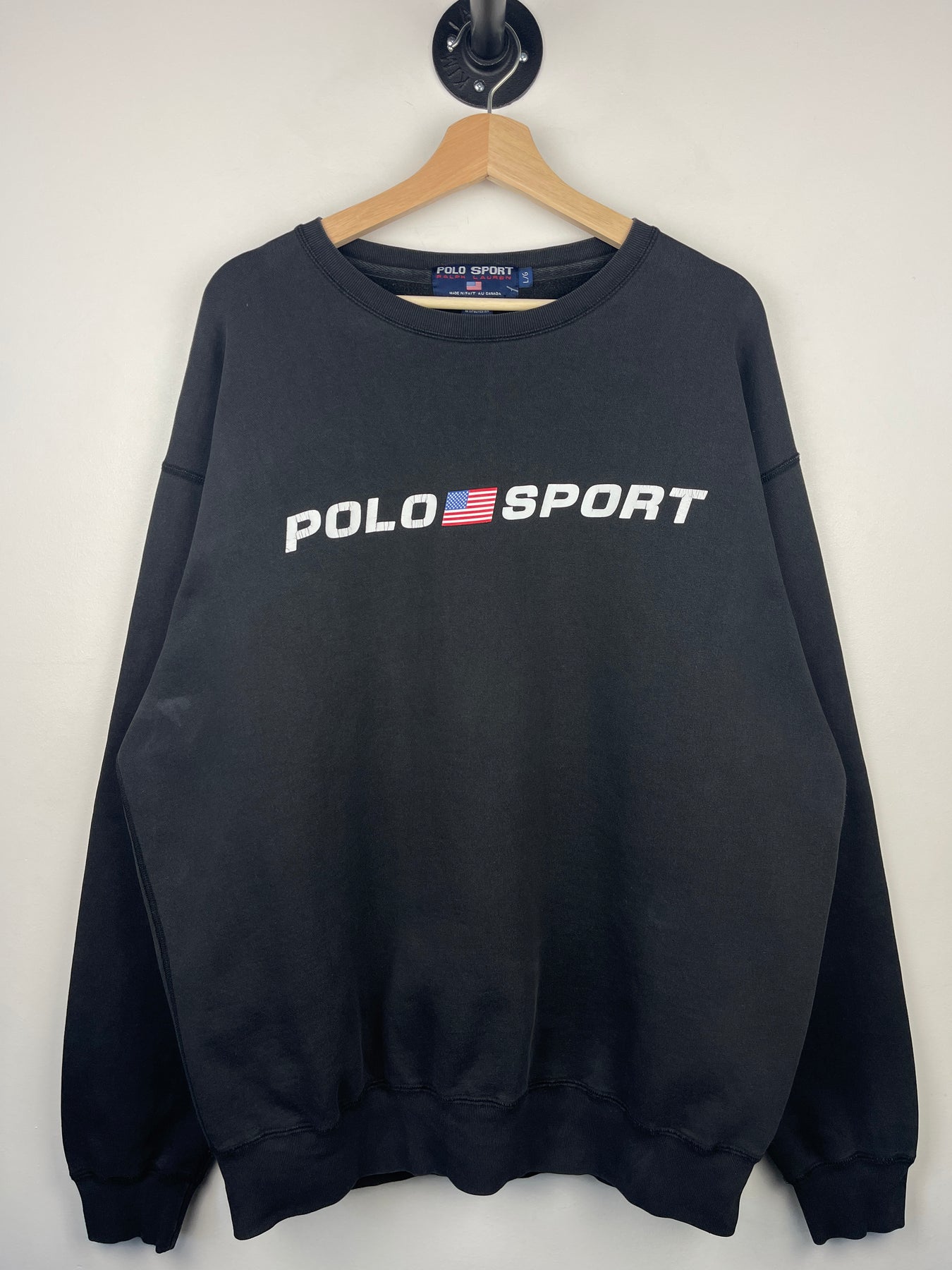 Vintage 90s Polo Ralph Lauren Sport Spellout Black Crewneck