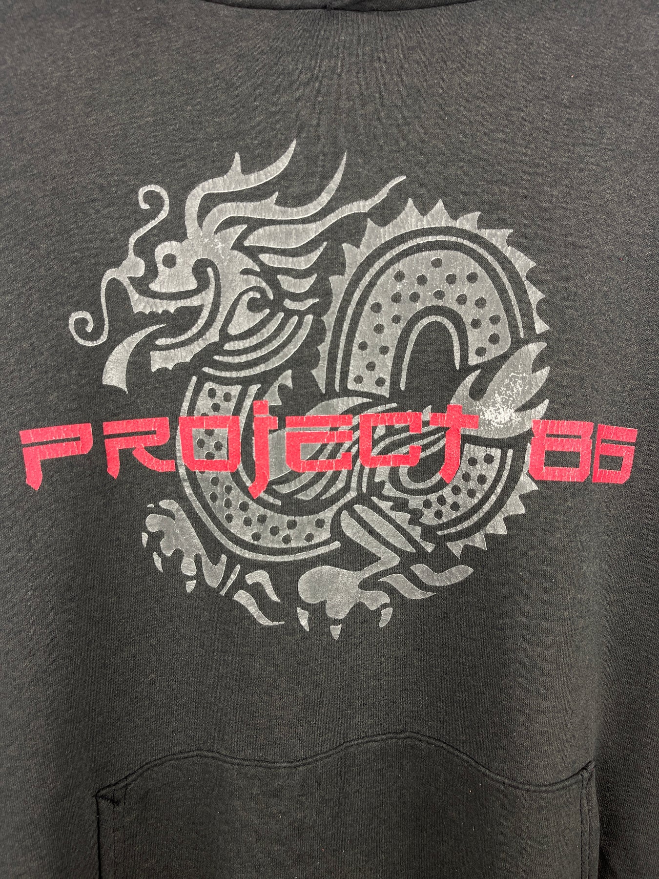 Vintage 90s Project 86 Dragon Band Faded Black Hoodie