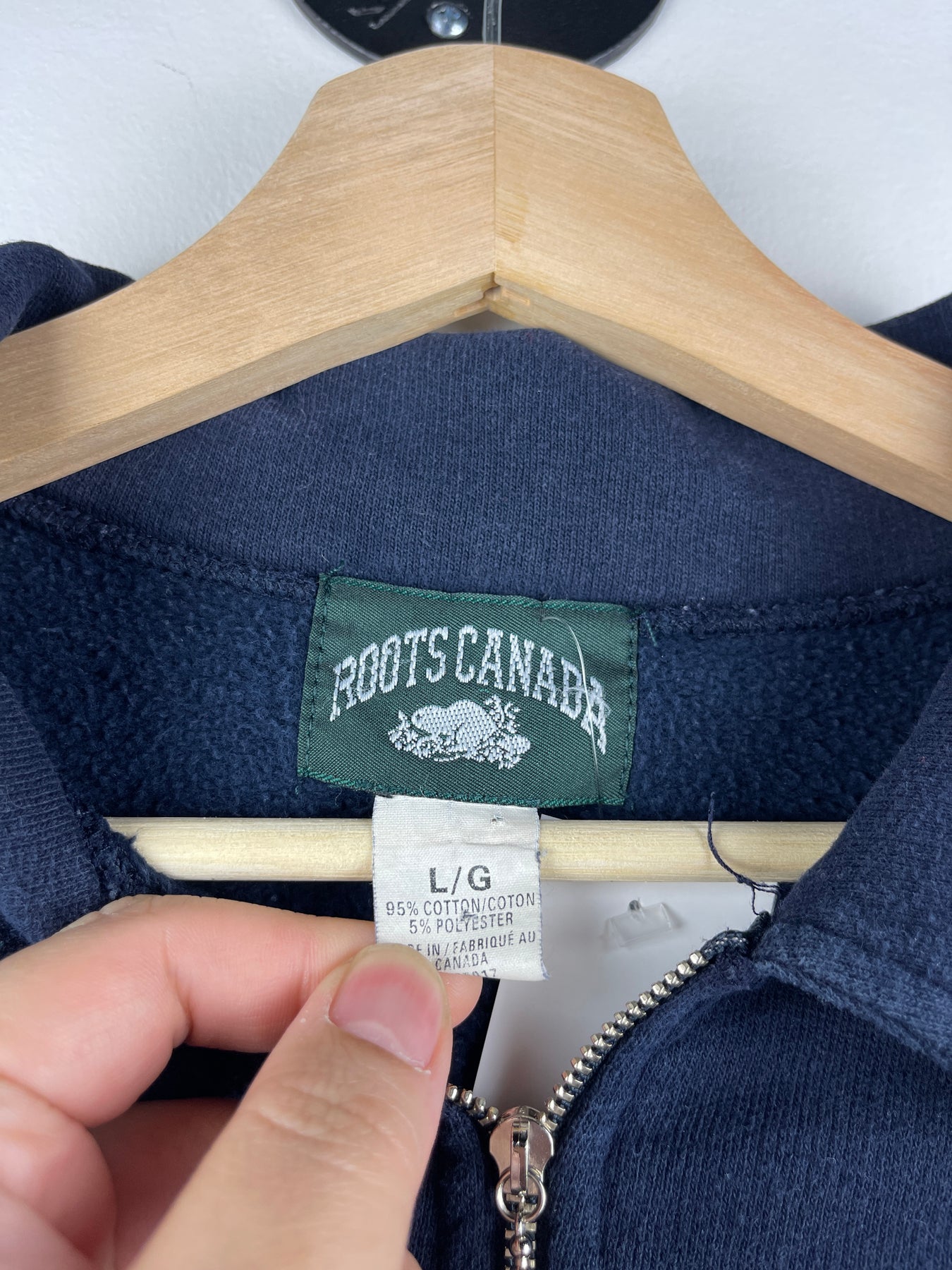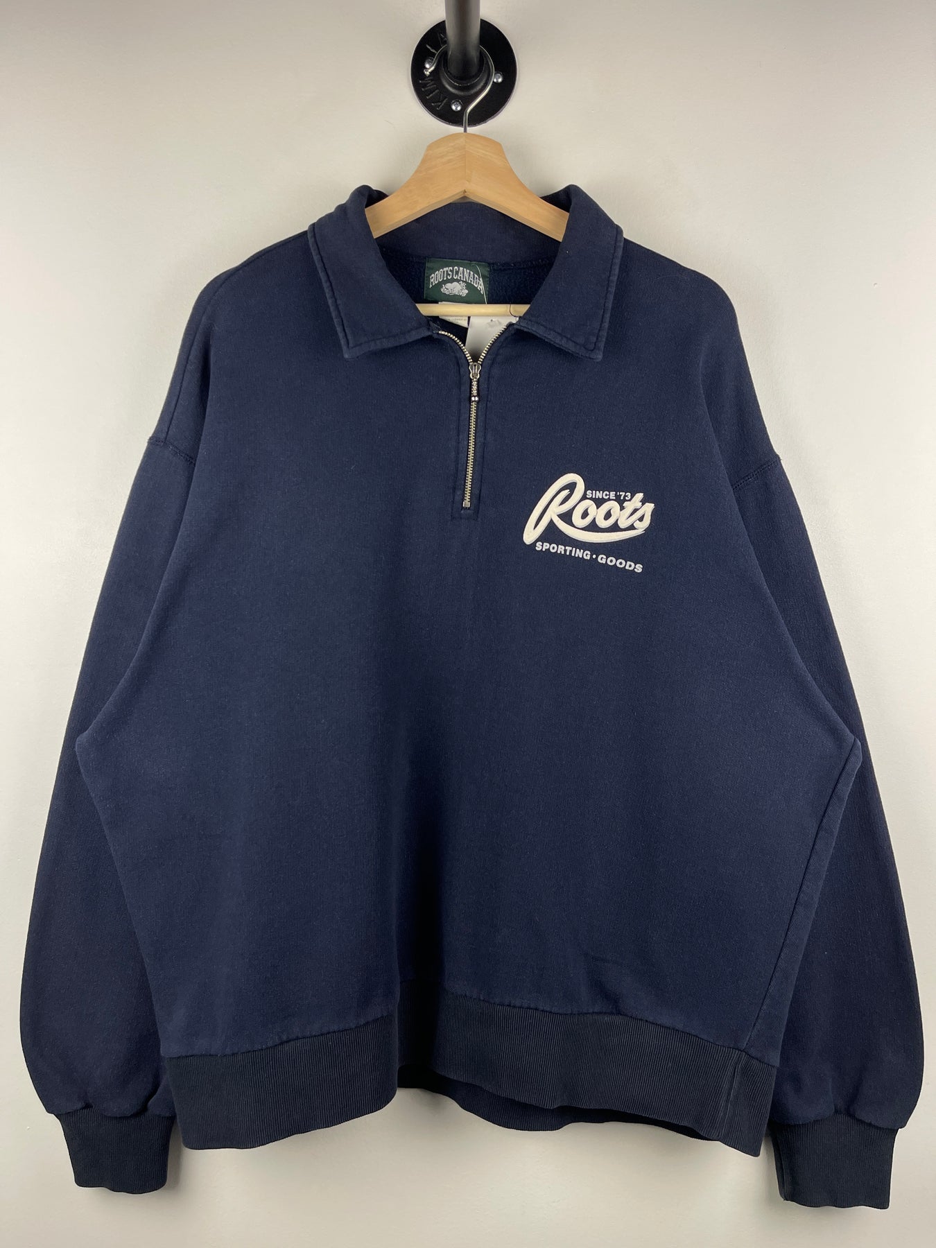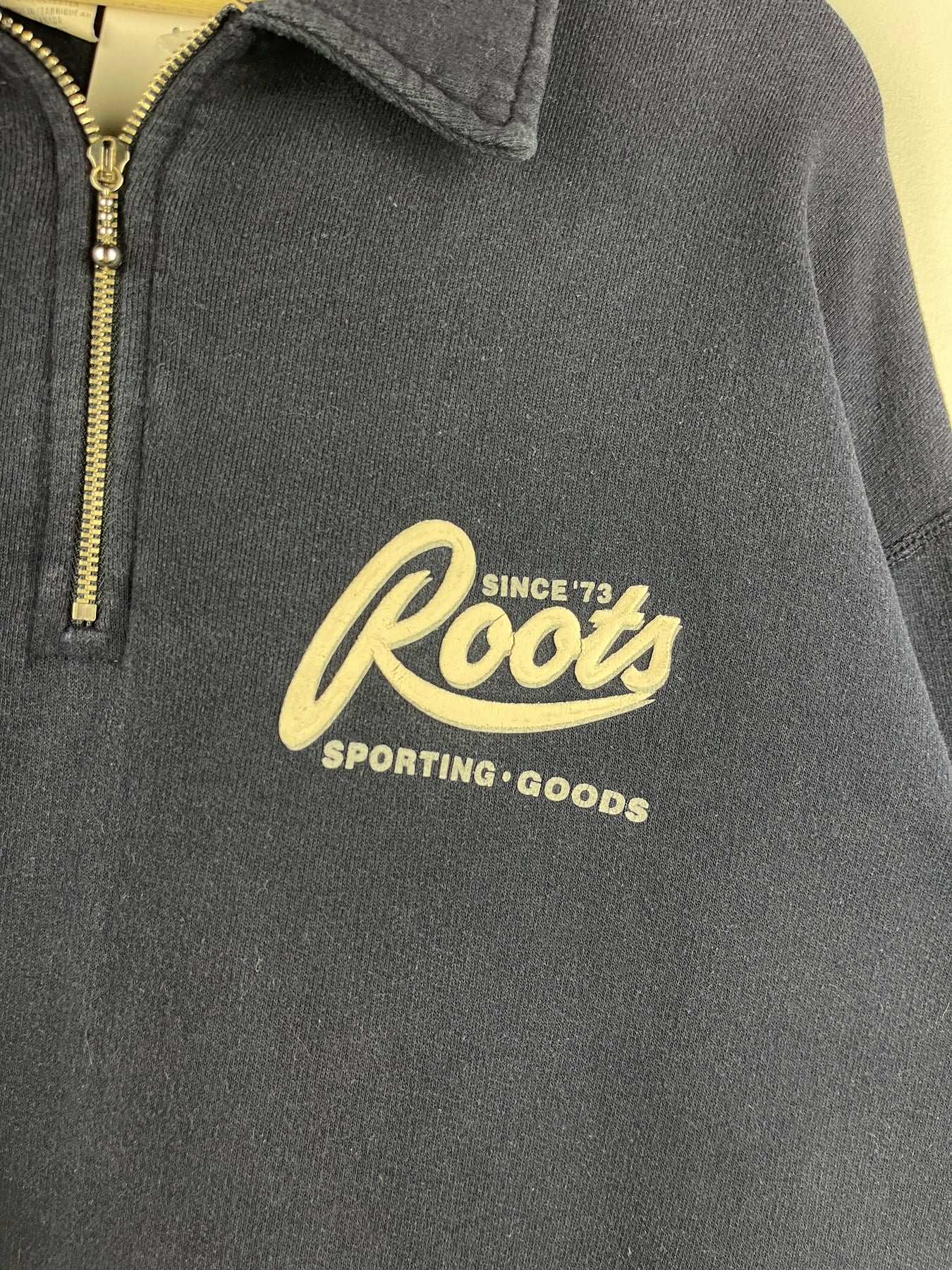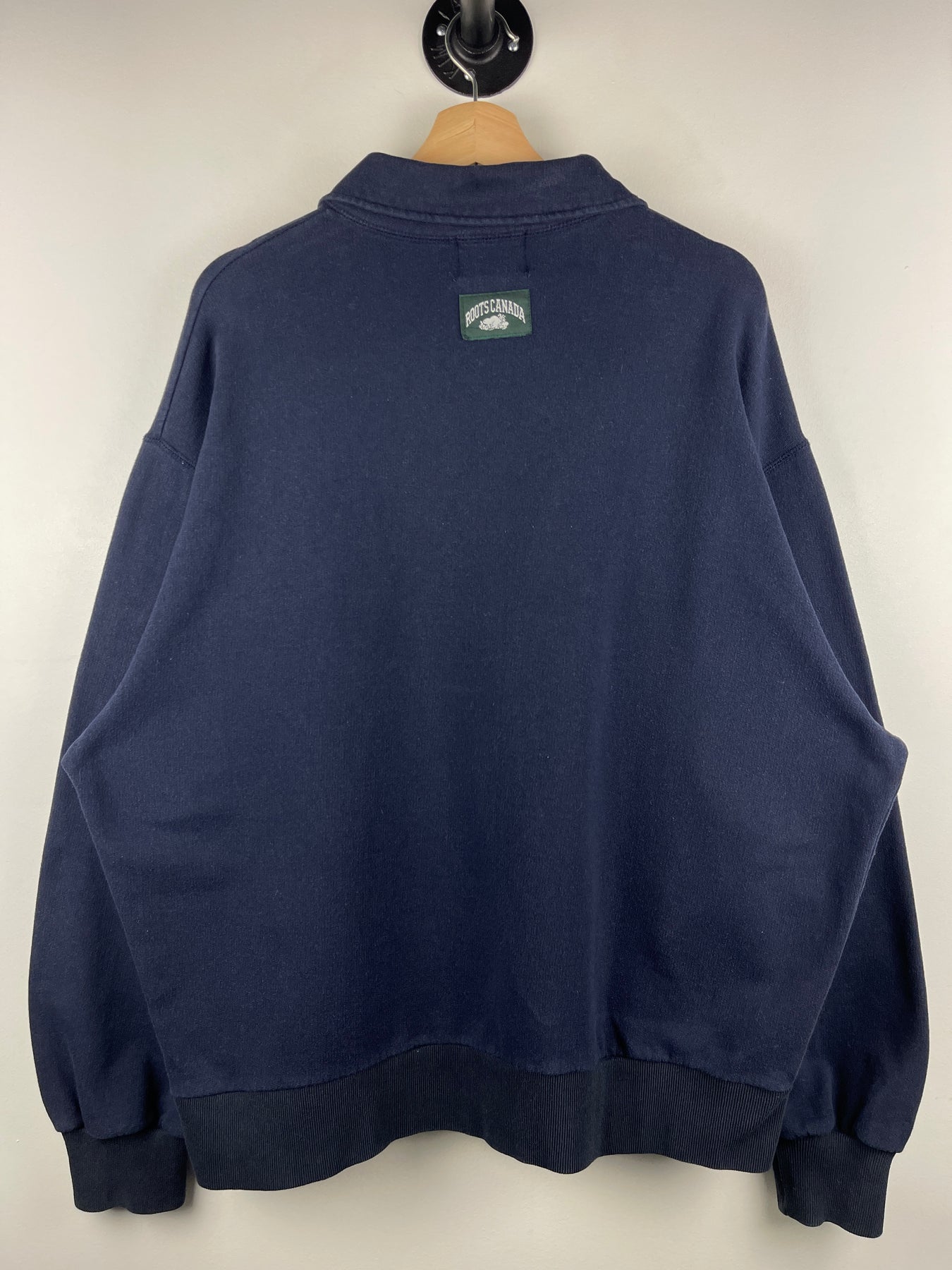 Vintage 90s Roots Sporting Goods Navy Quarter Zip Sweater