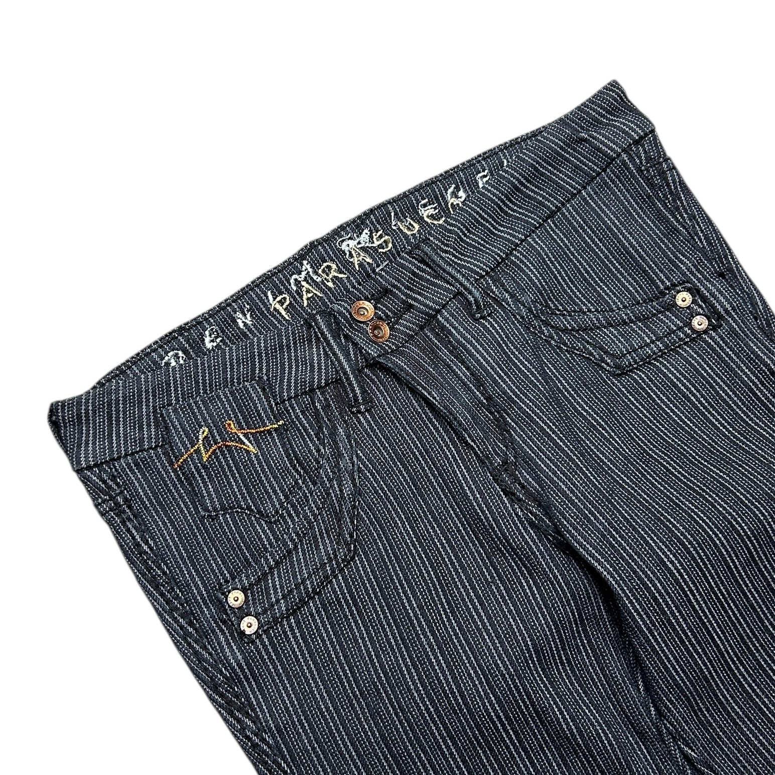 Vintage Parasuco Women's Black Pin-Striped Low-Rise Jeans