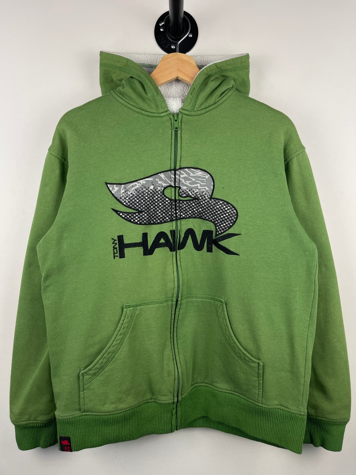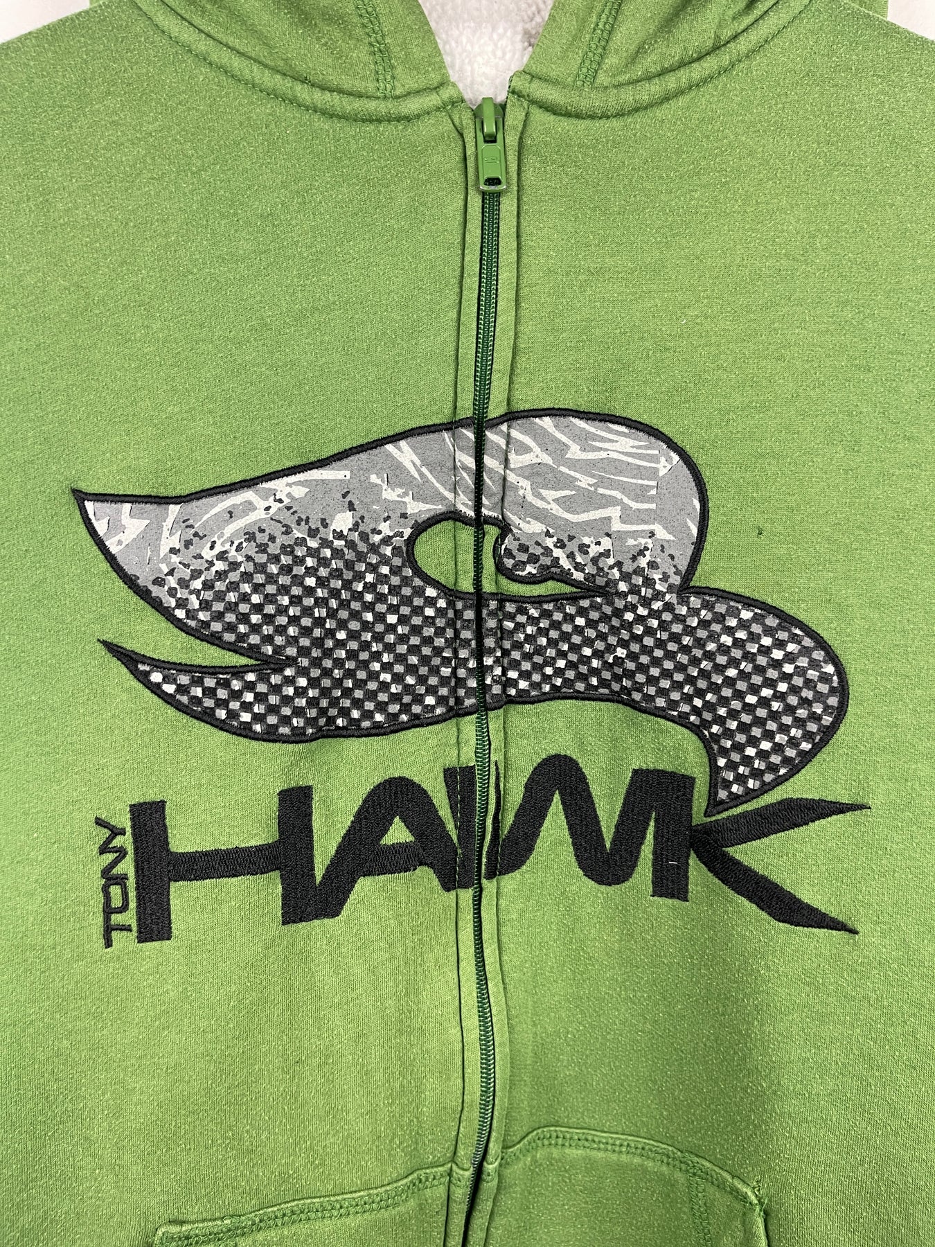 "Vintage Tony Hawk Skateboarding Fleece Lined Green Zip Up Hoodie"