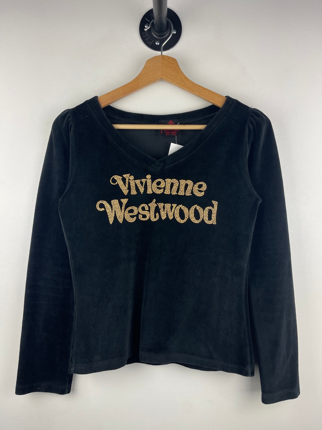 Vivienne Westwood Women's Black Velour Spellout Long Sleeve